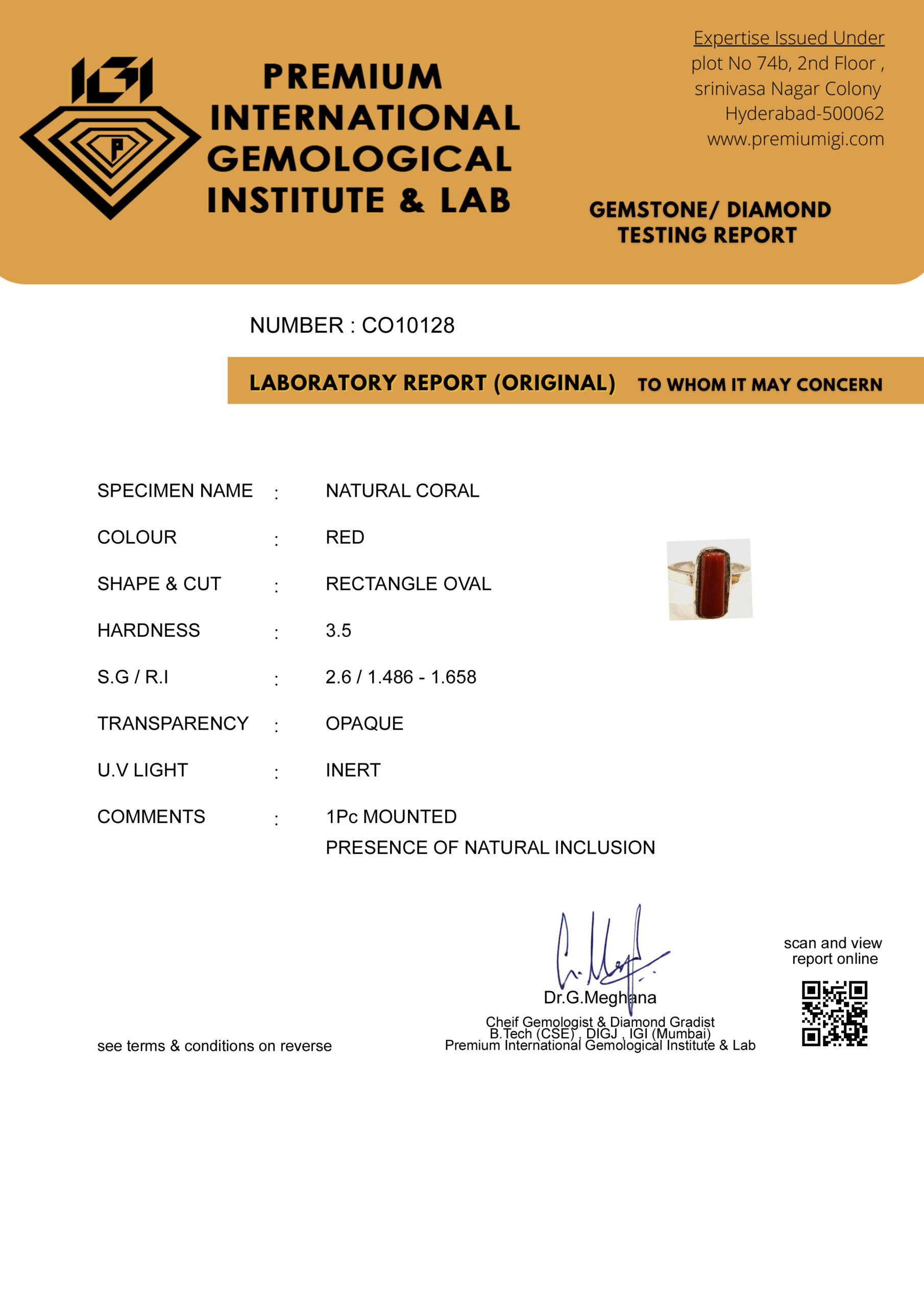 This is a computer generated report. In case of any report related issues, please contact customer support staff at info@premiumigi.com